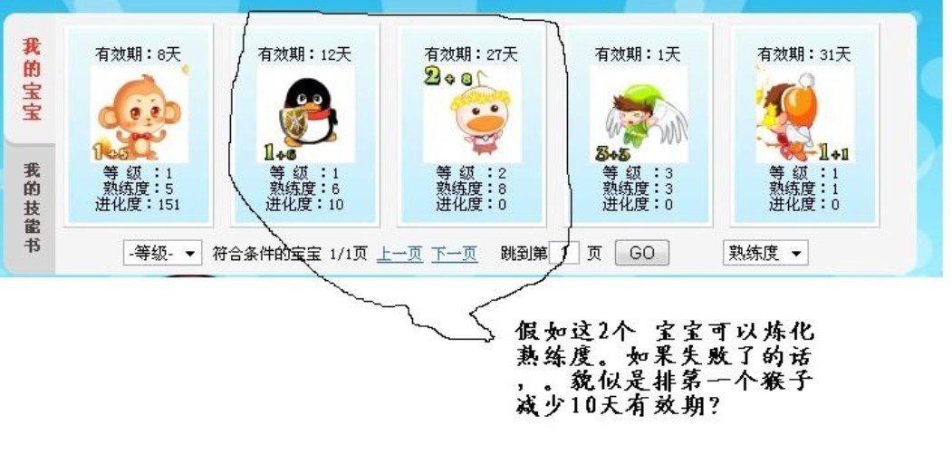QQ游戏宝宝炼化失败问题 点击展开 匿名用户 2012-10-15 10:30 满意回答 天赋宝宝无论排查搂笼前面和后面,失败都是天赋宝宝有效期减少10天,普通或者星座宝宝炼岩锅化的话是排在左边的宝宝有满糕效减少10天 匿名用户 2012-10-16 22:58 宝宝知道提示您:回答为网友贡献,仅供参考。 为您推荐: 其他回答 系统问题 匿名用户 2012-10-21 13:14 相关问题 QQ游戏宝宝两个1+5炼化怎么老是失败? QQ游戏宝宝3+6和3+1的炼化形象 关于QQ游戏宝宝形象炼化问题