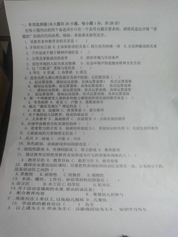 幼儿教育,选择题 点击展开 匿名用户 2015-01-24 11:25 满意回答 B B D B A C D C A A B B B D C 望采纳回分 匿名用户 2015-01-24 11:42 宝宝知道提示您:回答为网友贡献,仅供参考。 相关问题 可因可幼儿教育怎么样? 玉山镇哪里有幼儿教育? 可音可幼儿教育怎么样?