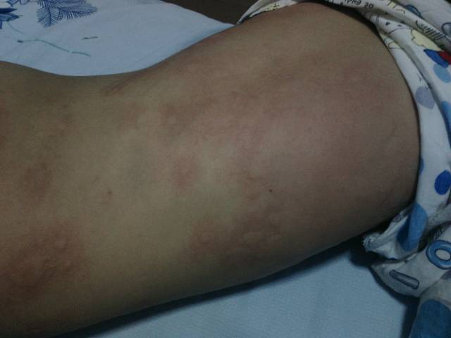 根据你的描述,估计为过敏引起的荨麻疹,建议口服抗过敏药如扑尔敏,外用激素药膏如尤卓尔等.(激素不宜长期使用).日常生活尽量避免外界刺激物和局部刺激,不抓,不用力揩擦,不用热水肥皂烫洗.不吃酸,辣菜肴或其他刺激性食物.发作期,忌食黄鱼,海虾,海鲜等容易引起过敏的食物.