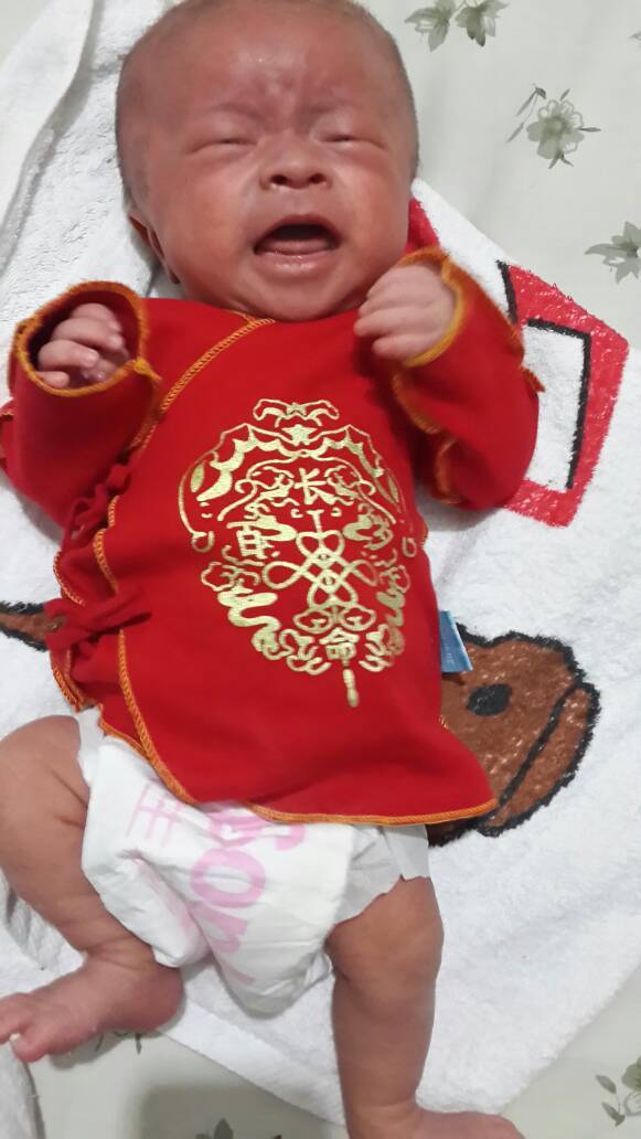 孩子今天刚满月,出生时45公分,5斤4两,怀孕时做彩超医生说孩子身体不协调,头大,腿短一厘米,现在