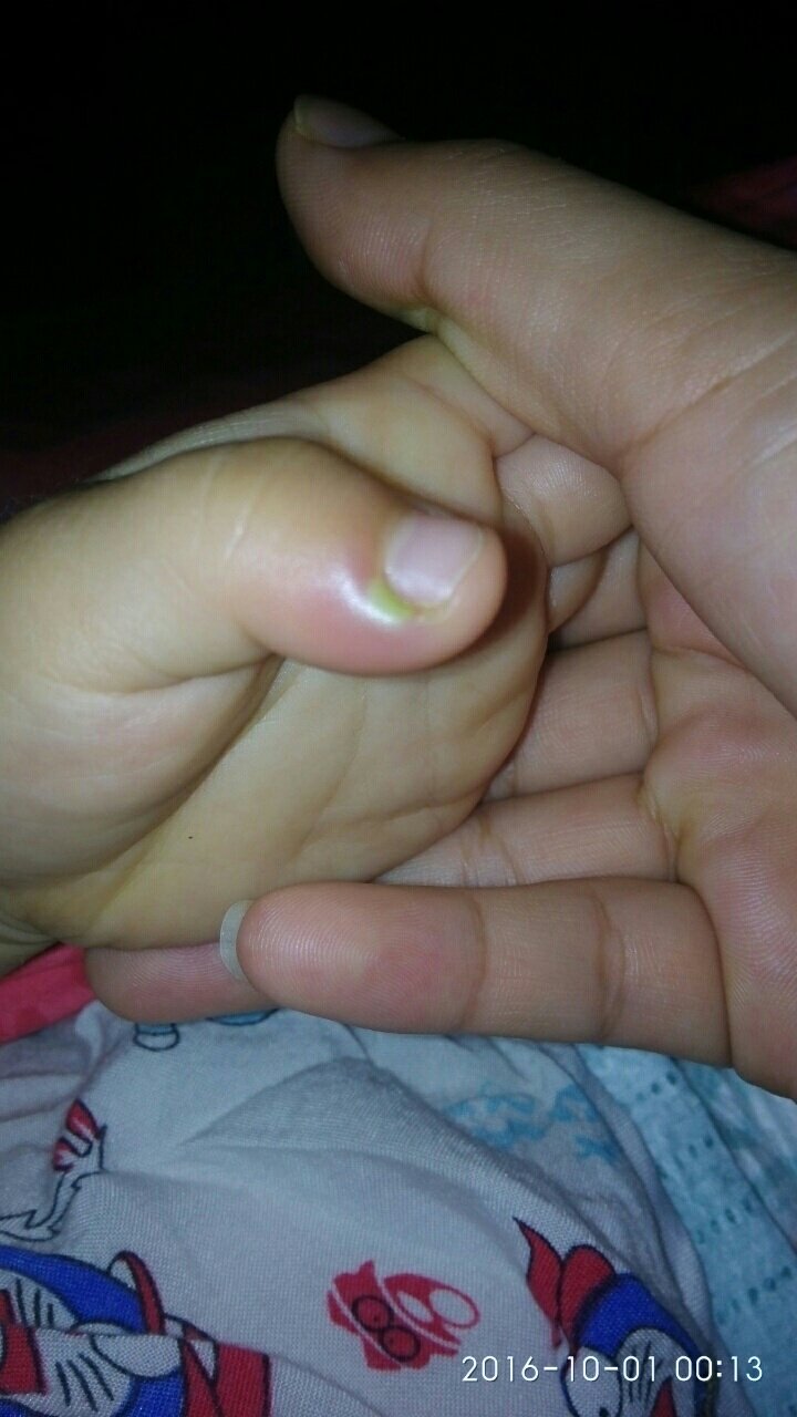 宝宝平时咬指甲,昨晚洗手时发现大母指旁边长了个绿色浓泡,浓泡周围又红又肿,怎么回事,求医生指点!! 宝宝平时咬指甲,昨晚洗手时发现大母指旁边长了个绿色浓泡,浓泡周围又红又肿,怎么回事,求医生指点!!!!!!! 点击展开 小猪佩琪123 2016-10-01 07:54 为您推荐: 其他回答 应该是感染了 媛🙊 2016-10-20 22:44 没事 ,,湿疹膏试一下 lenglingdi,, 2016-10-11 18:14 赶紧去医院 宋宋妈妈 2016-10-01 19:31 上医院看看吧 萱_cqxF 2016-10-01 09:54 这种情况下应该是到外科的呀, 120 2016-10-01 09:45 加载更多 相关问题 宝宝总喜欢咬指甲,今天洗手时发现,宝宝母指长个豆粒般大小,绿色像浓一样泡,泡周围红红的,就大母指一 右手大母指麻木和胀痛是怎么回事,有时早上睡醒起床后脚也有轻微的发麻 宝宝还在哺乳期,请医生朋友们回 您好,医生我家宝宝快三个月了,发现两个脚的,大母脚趾甲向上长,请问怎么回事,谢谢
