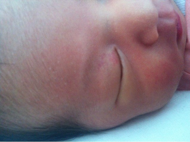 我家宝宝眼皮上也有,刚生下来问医生,医生说没事。