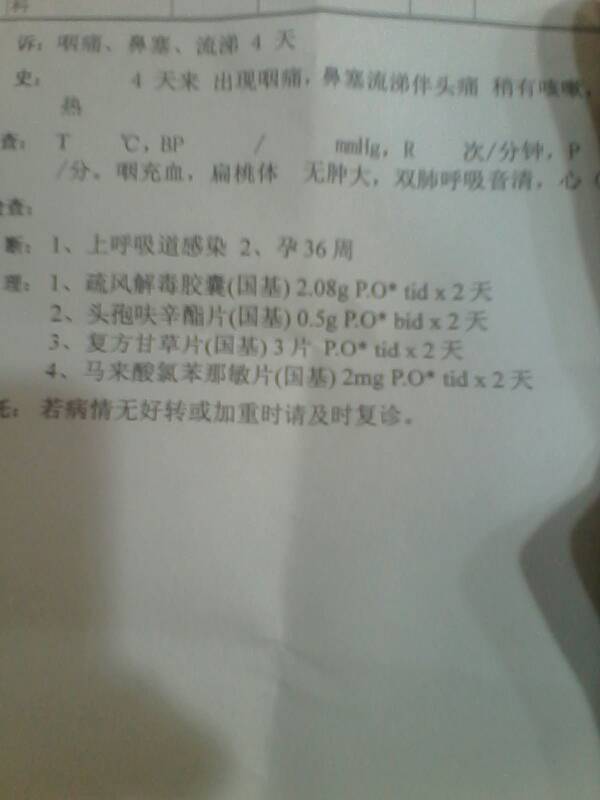 孕妇36周,由于感冒多天了,鼻塞,有浓痰,今天看病开了有头孢的药,请问有影响吗