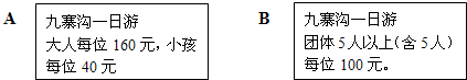 “六一”期间,青年旅行社推出A\B两种优惠方案红红一家5口人(4个大人,1个小孩),参加九寨沟一日游.
