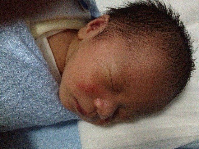 宝贝刚出生6天,脸上长了很多像痱子那样,带有白色脓包,请问这是怎么回事?谢谢!