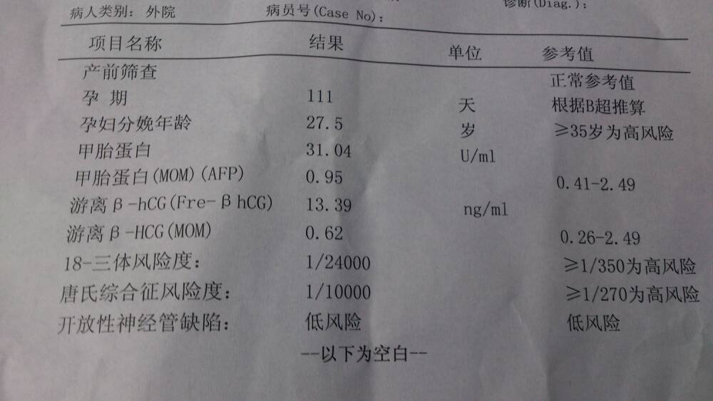 医生帮我看下糖式筛查的结果通过没有?医院人太多 排队有30 40个人 排到下班也见不到医生给我看报 医生帮我看下糖式筛查的结果通过没有?医院人太多 排队有30 40个人 排到下班也见不到医生给我看报告 就暂时回来了 明天再去医院!今天不放心 想知道这报告? 点击展开 courage 2014-11-21 17:06 为您推荐: 其他回答 只要低风险就没问题 188*****083 2014-11-22 08:53 完全没问题 坚强的白杨树 2014-11-22 05:29 你好,这个结果算是基本正常吧,没有什么问题,查的几项都在正常范围之内。 冬乐194 2014-11-21 21:09 正常的。。 鲤鱼e美 2014-11-21 20:56 都挺好的呀 小睿恩 2014-11-21 18:32 加载更多 相关问题 28周去做糖筛 结果排队晚了 医生又叫我30周再做,网上不是说过了28周就不准了吗?请问我还要去吗 今天去验了孕激素、结果是49795、排队太多人、没给医生看就回来了,这结果是正常吗? 我怀孕5个月了,医生说肝功能高,今天又去复查了医生说这次高得太多了要求转大一点的医院,捡验结果是A