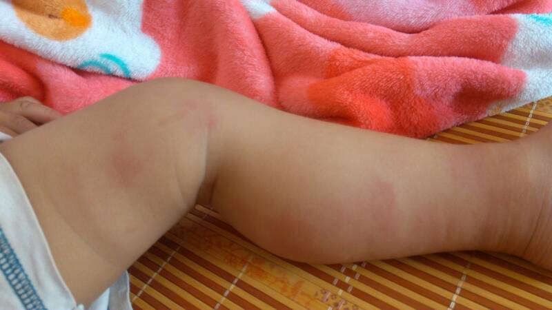昨天因为地板上的竹席有蚂蚁所以换了另一张好久没用的竹席,之后发现宝宝皮肤有成块红肿,就立即冲凉并涂