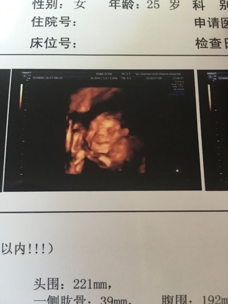 24周做的四维彩超 宝宝的样子看的好模糊哦 感觉像遗传了我的塌鼻子…脸盘大大的 不过是健康的宝宝