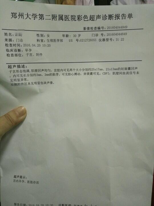 移植后第二十九天,一超顺利通过,是双胞胎,不过医生让七天后再做B超,我心里有点犯嘀咕,会不会有什么