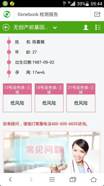 无创结果出来了,是低风险,是不是证明宝宝染色体没问题是吗? 无创结果出来了,是低风险,是不是证明宝宝染色体没问题是吗? 点击展开 伟伟健康快乐 2014-10-02 10:26 为您推荐: 其他回答 恭喜宝妈,, 小宝美女的妈妈 2014-10-02 16:21 是的啊!! 一帘幽梦_r8mF 2014-10-02 14:42 我是2800, 邹渃舒 2014-10-02 13:02 我也做的无创,各项合格,2800 189*****209 2014-10-02 11:34 你好,根据你的描述问题应该不大,建议你不要担心,以免增加压力。 羽化翩跹lc 2014-10-02 11:34 加载更多 相关问题 有谁知道?能给我解答一下吗???无创低风险是不是代表大人的染色体没问题? 怀孕第一个月不知道吃了几天感冒药还吃了两次避孕药,检查了无创,胎儿染色体都正常,是不是能证明宝宝是 孕23周,今天做四维,说宝宝双足足内翻!怎么办!当时12周唐筛说我低风险啊!明天检查染色体,有问题就不能要了!没问题就可以要!不过脚还是内翻,出生治疗一定治好吗