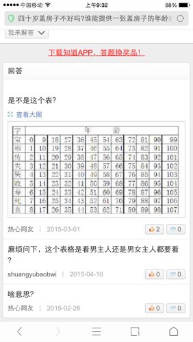 有谁有经验的告诉我建房年龄表对应的是周岁还是虚岁?下面有图片!还有生育的清宫表是虚岁还是周岁?谢谢 有谁有经验的告诉我建房年龄表对应的是周岁还是虚岁?下面有图片!还有生育的清宫表是虚岁还是周岁?谢谢啦 点击展开 匿名用户 2015-05-15 10:34 满意回答 建射蒸房年龄是按照周岁来的。 只辨高贸要算出你典葛周岁多少,对应这个表即可。 匡涵菱_19uU 2017-12-27 08:15 宝宝知道提示您:回答为网友贡献,仅供参考。 相关问题 清宫表虚岁是指怀孕时的还是现在的年龄虚岁 女人最佳生育年龄不要超过28虚岁还是28周岁???不要复制别人的,最好有科学的解释 急急 1985年10月31日阴历9月18出生,最后一次月经是2014年1月20日阴历腊月20,请问我的虚岁是多少,是用2013年还是2014年的清宫表算,希望会算的人帮忙算一下,谢谢