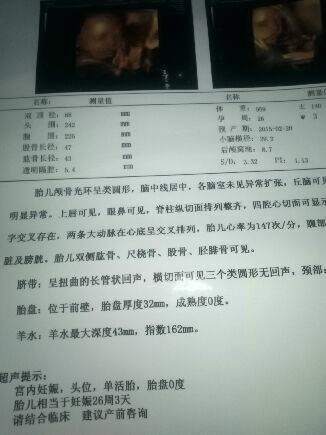 谁会看四维彩超单子知道男女进来说下 谁会看四维彩超单子知道男女进来说下 点击展开 187*****161_YMRY 2014-11-18 19:10 为您推荐: 其他回答 问医生才知道 小洛安 2014-11-20 13:37 你好,看超声检查的报告是不能判断胎儿的性别的,胎心羊水在正常范围,脐带血管正常,胎盘 的位置正常的,按时检查吧。祝你生个健康的宝宝 文斯6 2014-11-18 21:25 不会。。。。 青倩 2014-11-18 20:45 这样是看不出男女的,只有在照彩超的过程中医生才能看到 罗伊·班史顿 2014-11-18 19:28 。。。。。 182*****632_8mYS 2014-11-18 19:27 相关问题 做四维彩超医生不给说男女,那找人看彩超单子能看出来吗 看这单子能知道男女吗,宝宝现在多重呢!羊水多不多,入盆了吗会提前生吗 有专业医生吗,帮我看下四维彩超的单子,上面写的羊水内可见两条带状强回声 请问注意什么