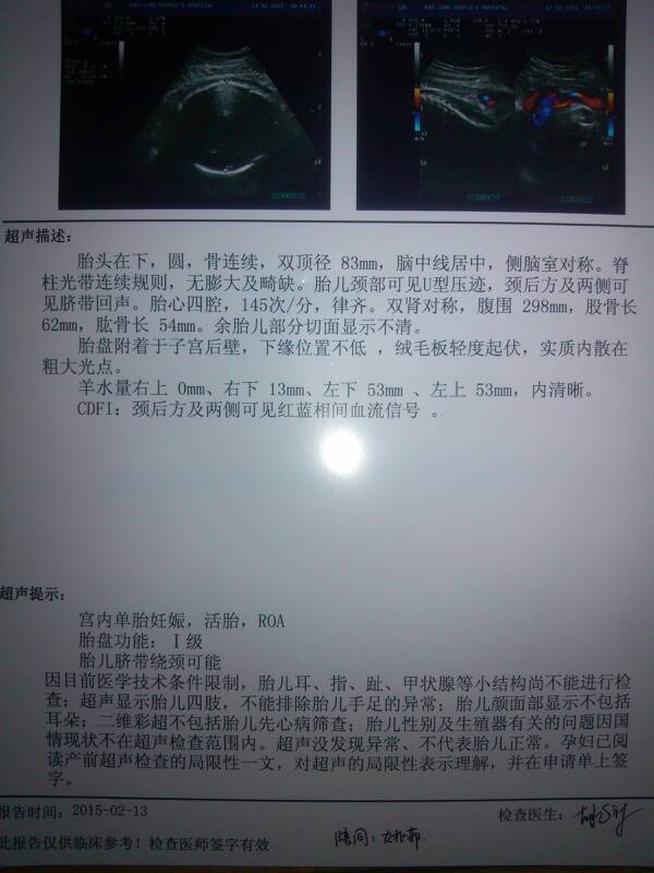 我的有三十六周也是脐带 绕颈一周后来三十七周宝宝自己会绕 过来的没事的