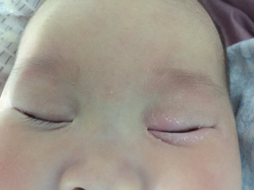 宝宝挺可爱的,用奶水给洗一下不行就去儿童医院看一下