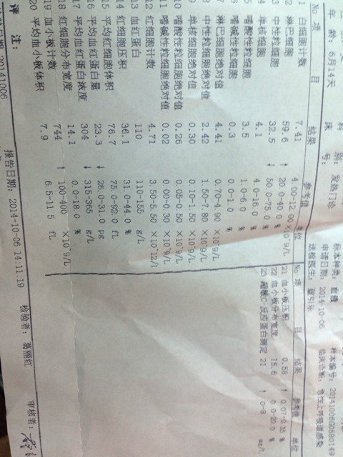 宝宝9月27号发热挂了两天水下去了!后来10月4号又发热,医生说病毒高,挂三天!想问下单子什么情况