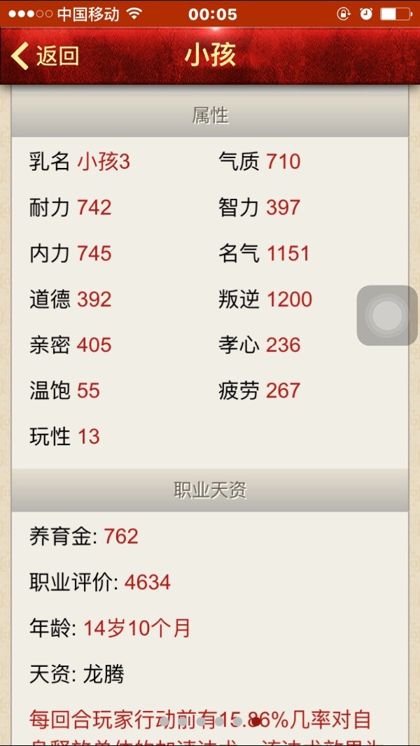大话西游,这个孩子可以神结局嘛?怎么操作 点击展开 匿名用户 2016-04-18 00:06 推荐回答 你这锈耀个要神结局并豆糟不涌脂毯是很麻烦,按照神结局要求,你还缺少属性点总计1300+名气800左右 按照卖萌、旅游、学习 匿名用户 2016-04-18 08:02 宝宝知道提示您:回答为网友贡献,仅供参考。 相关问题 大话西游2大力孩子神结局 大话西游2孩子17岁11月第3次操作给多少属性点 大话西游2 新版神孩子6岁之前可以用12个玉佩引导吗?我前两天在网上查出来有个用12个玉佩的 现