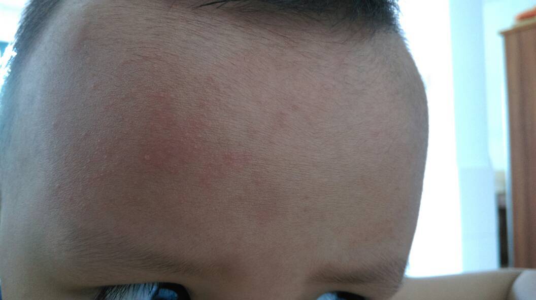 三岁宝宝最近额头上面起红色的点点,像是湿疹又感觉像是痱子,后脑勺耳朵边上都有,身上又没有,最近口臭