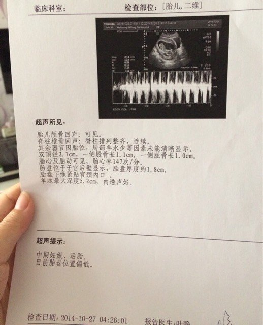 昨天半夜流血了,血里还有羊水,去医院医生说是因为胎盘太低压的,还说后期如果能养好就没什么问题,如果