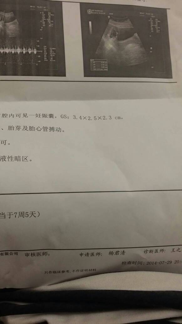 哈哈,b超归来,7周5天 哈哈,b超归来,7周5天 点击展开 F.inal丶阳光 2014-07-29 21:50 为您推荐: 其他回答 定期检查胎儿发育情况,发现问题及时处理,增加营养体质好适度锻炼对胎儿有利, WEIXIANERYUAN 2014-07-29 21:53 我觉得你做早了 佳佳妈妈 2014-07-29 21:53 停经7周以上是可以在超声下观察到 原始心管搏动的情况,胚胎发育是正常的,建议定期产检,祝好孕。 skychenlanlan 2014-07-29 21:51 相关问题 10周六天的b超!帮我看看 宝宝留级了,预产期过了3天,真着急,39周刚做的b超,这几天用不用在做一次啊