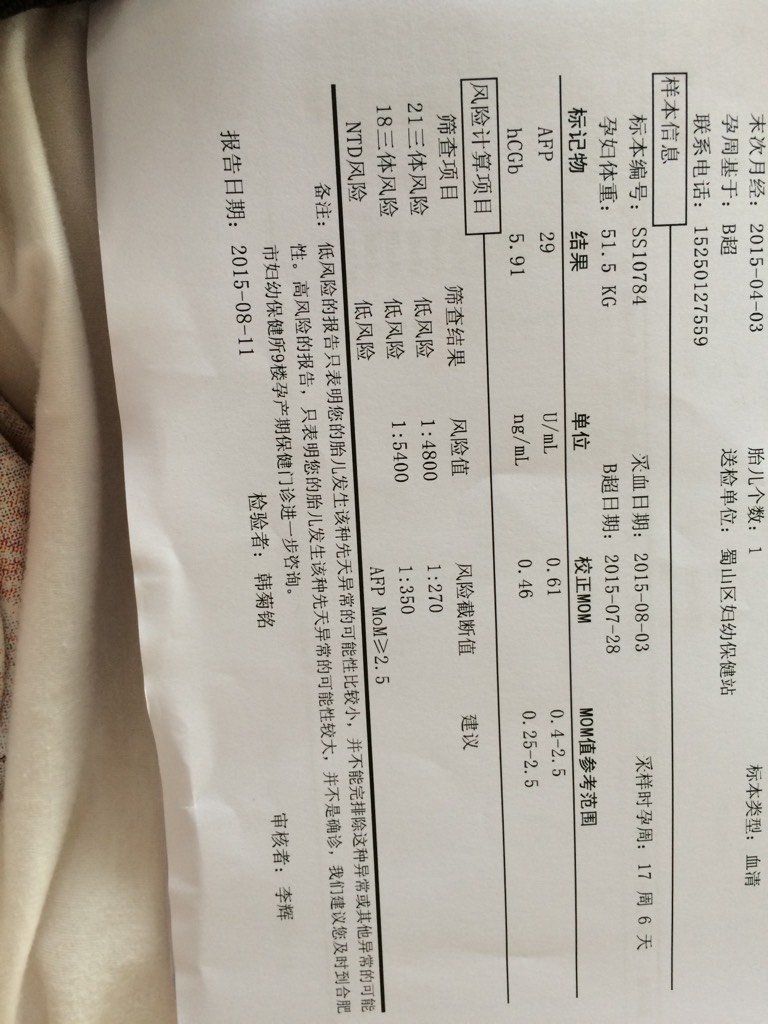 麻烦有经验的宝妈、医生给我分析下我的唐氏筛查结果、和血常规化验结果、其中说我的转氨酶上升59、这个 麻烦有经验的宝妈、医生给我分析下我的唐氏筛查结果、和血常规化验结果、其中说我的转氨酶上升59、这个要紧吗?三个月的时候查说是41、好担心啊… 点击展开 康宝、儿^ _ ^ 2015-08-14 10:00 为您推荐: 其他回答 没事的。。。 水小水 2015-08-14 15:44 没事的。 。 1961799616 2015-08-14 15:30 休息好来就会降低了 臭屁妈 2015-08-14 15:15 没事的别担心 小丸子! 2015-08-14 15:13 具体得问医生 顶级小宝 2015-08-14 14:50 加载更多 相关问题 血常规化验转氨酶差0 85#请问后果严重吗,啥病会倒致这… 孕31周加4天,血常规检查,骨丙转氨酶76 5谷草转氨酶59 9,肝损 谷丙转氨酶97 谷草转氨酶58 正常范围是0~40,这是什么问题引起的呢,其他血常规检查都正常