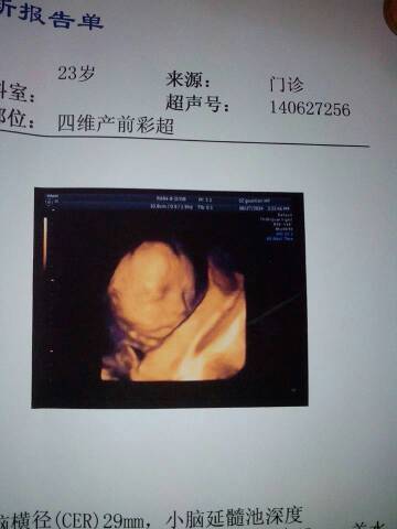 你这个只显示除了胎儿的颜面部的情况,并没有给出胎儿生殖器部位的图片,所以是不能鉴定胎儿的性别的,最好是在彩超下动态观察比较容易鉴定。