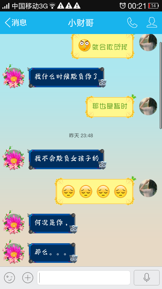 一个男生说我不会欺负女孩子的,何况是你,什么意思? 点击展开 匿名用户 2015-08-26 00:32 满意回答 不会欺负.只会欺骗 匿名用户 2015-08-26 00:34 宝宝知道提示您:回答为网友贡献,仅供参考。 为您推荐: 其他回答 你在他心中与别的女生不同 匿名用户 2015-08-26 00:38 说明你不单单是女孩子,还是他心目中的女神 匿名用户 2015-08-26 00:38 美丽漂亮的女孩子。 匿名用户 2015-08-26 00:37 告诉你在他心中的份量很重也可以说向你表达爱意! 匿名用户 2015-08-26 00:37 加载更多 相关问题 一个女孩子很享受可以欺负一个男生,这说明她是不是很不懂事?还是她喜欢我啊,哈哈哈哈哈哈 一个男生平时喜欢和我闹,还喜欢欺负我,还说我像小孩 最近叫我傻子聊天时 是什么意思啊?我很傻吗 天不会蓝,一个女孩子给我留言,我不会不在,是什么意思啊?