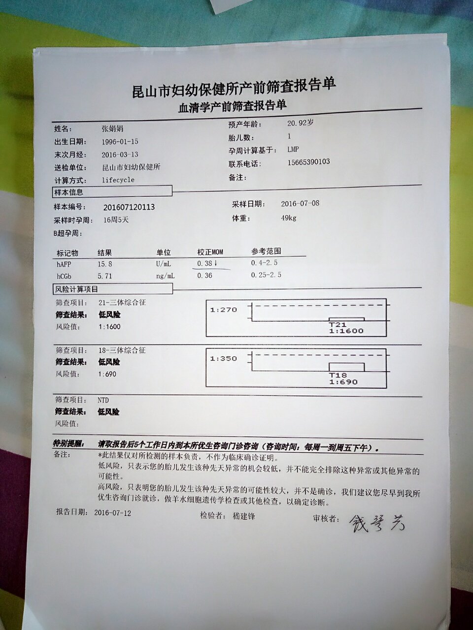 唐氏筛查低风险,怎么办,宝妈帮忙看看,医生说让我去苏州市母子保健中心,医生说的时候,我眼泪直往下流