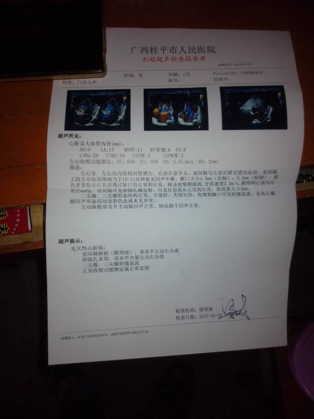 各位心脏科医生你们好,我小孩36天大检查心脏彩超得了先天性心脏病,照片是彩超的报告单 希望医生您可 各位心脏科医生你们好,我小孩36天大检查心脏彩超得了先天性心脏病,照片是彩超的报告单。希望医生您可以给个专业的指导见解。 点击展开 匿名用户 2015-02-02 16:47 推荐回答 没有关系的 我母亲也是先天室缺损降怠 现在截剪76了还好好的 生儿育女 !千万不要悠耀剪手术 !有风险! 匿名用户 2015-02-02 17:21 宝宝知道提示您:回答为网友贡献,仅供参考。 为您推荐: 其他回答 大了手术 匿名用户 2015-02-02 16:47 相关问题 我的宝宝才11天大、医生说是先天性心脏病、、请问是吗、、是心脏病的话能医好吗?? 宝贝才29天大,却查出先天性心脏病空间隔缺损和房间隔缺损,建议6个月后手术,看着儿子就忍不住要哭 11天大的宝宝患先天性心脏病