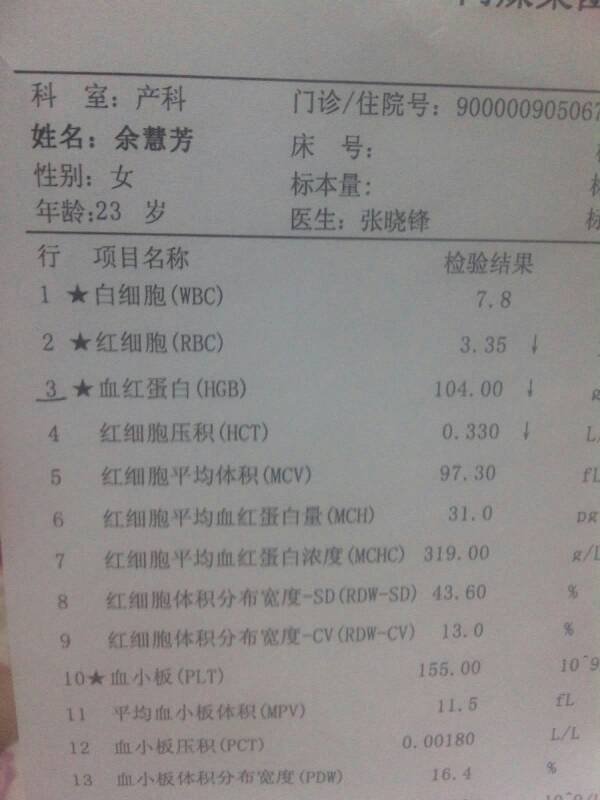 怀孕26周产检说贫血,请看看我贫血厉害吗,可以用食补补起来吗 点击展开 匿名用户 2014-05-07 20:52 为您推荐: 其他回答 病情分析: 你好,这个血常规检查结果血红蛋白和红细胞都是低于正常值的,处于贫血的状态,需要引起重视的 指导意见: 这种情况贫血可以考虑多吃新鲜的肉类食物,另外就是猪肝,红枣等补血,改善不明显需要考虑补充铁剂的 匿名用户 2014-05-07 20:56 相关问题 怀孕25周,贫血严重,怎么补?贫血严重对胎儿有什么影响?谢谢! 怀孕肚子很小 孕33周 腹围才88 腹长才31 但去检查医生说只是有点贫血其他的都挺健康 我很 怀孕35周,有点贫血,但是不喜欢喝红糖水,请问还有别的办法吗?