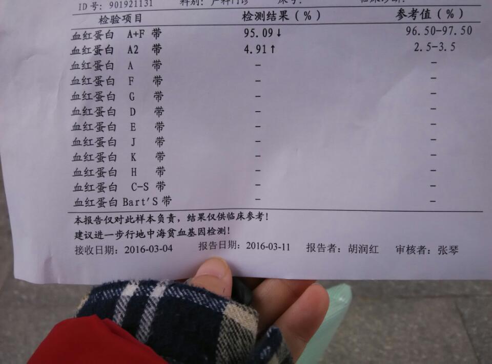 地贫初筛血红蛋白A+F95.09,血红蛋白A24.91,是不是可确诊地贫了? 地贫初筛血红蛋白A+F95.09,血红蛋白A24.91,是不是可确诊地贫了? 点击展开 yuni_小哈 2016-03-12 15:21 为您推荐: 其他回答 问问医生,做进一步检查 183*****163_ROMC 2016-03-12 19:00 那就做一个吧 谁啊你 2016-03-12 19:00 医生怎么说 谁啊你 2016-03-12 18:43 不是很了解。。 小小宝贝乖 2016-03-12 18:22 问问医生吧 宝宝健康成长~ 2016-03-12 17:56 加载更多 相关问题 孕检地贫初筛血红蛋白A+F是95 09(参考值96 5-9 宝宝初筛地贫还没确诊,患病几率大吗 地贫初筛阳性就能确诊地贫吗
