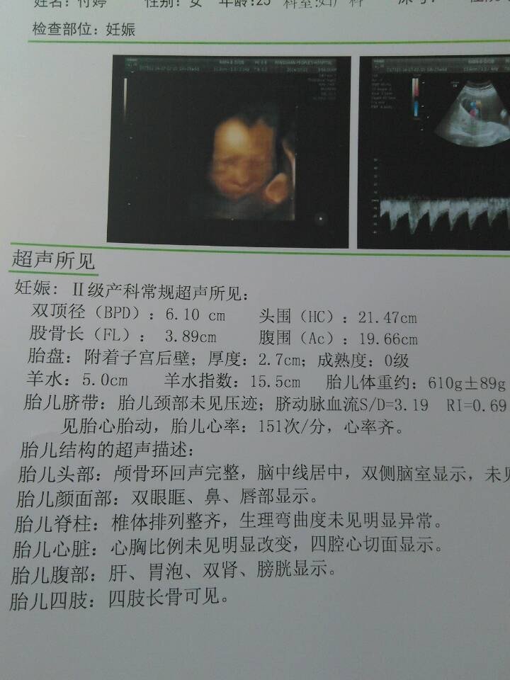 各位看看我的四维有问题吗?照片显示个人觉得嘴唇有条线,有点不正常,报告又是写的面部显示,也没说正常 各位看看我的四维有问题吗?照片显示个人觉得嘴唇有条线,有点不正常,报告又是写的面部显示,也没说正常或异常,医生又说没问题,自己还是比较担心,麻烦有经验者帮忙看看… 点击展开 Fi na﹑ 2014-08-09 18:24 为您推荐: 其他回答 你好,宝宝这样就是非常正常的,宝妈尽量的就是不要担心,如果有问题,一般产检的医生都是会告诉你的 黄宇医生 2014-08-10 12:20 没事的 我q1285162670 2014-08-09 20:20 相关问题 宝妈们查四维报告单上的图片有没有看胎儿的嘴巴那里像唇裂?图片嘴唇那里有一条线… 宝宝六个月做四维彩超的时候没张嘴,在临产前做了一次b超说可能有问题,嘴唇没连起来,会是唇裂吗? 四维彩超检查,打印的图片我看着好像下嘴唇像是在往里吸着,是不是有问题,有没有人遇到这种情况?
