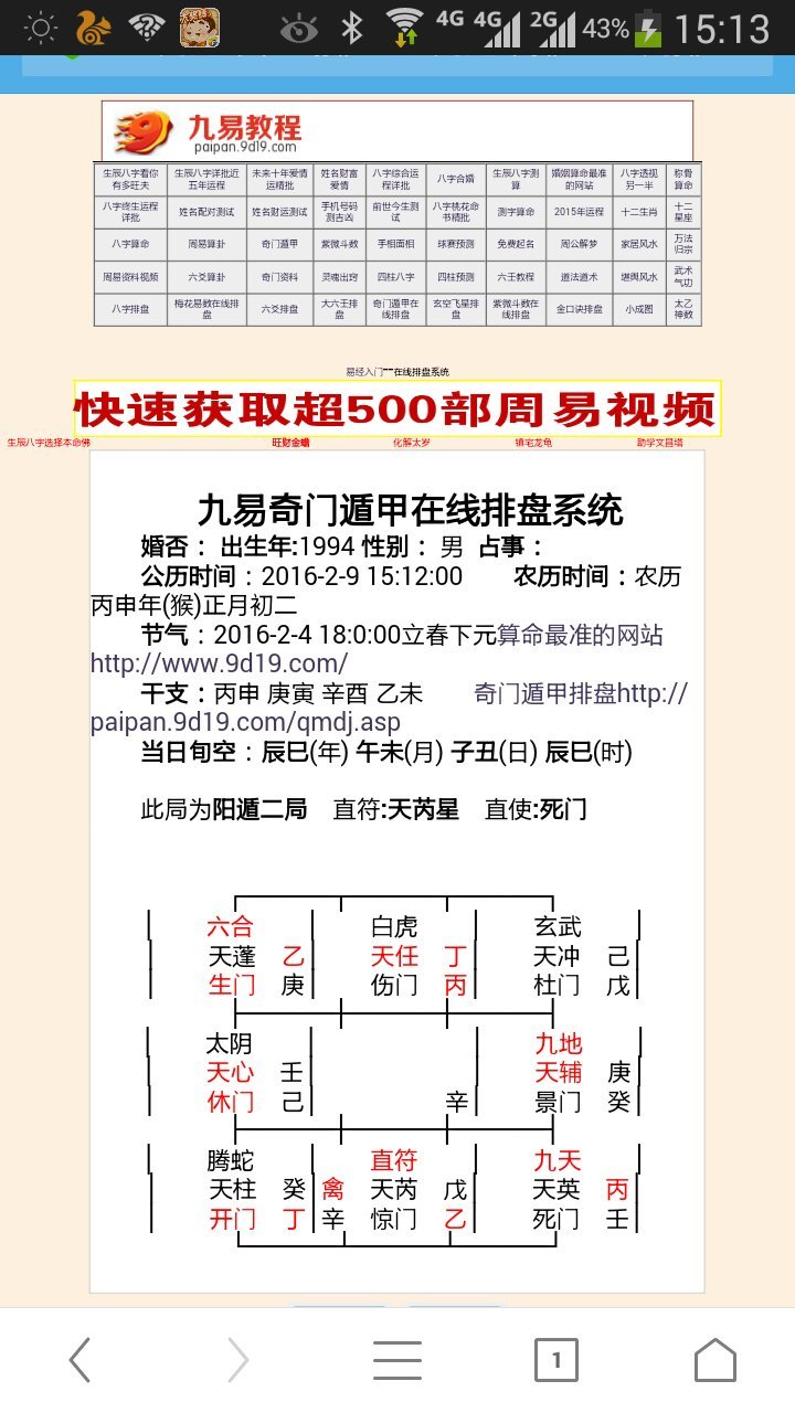 奇门遁甲在线求测,男94年属狗的 问一下我心中想的这女孩喜不喜欢我 谢谢了 点击展开 匿名用户 2016-02-09 15:17 满意回答 女方身高1.63左右,有钱,皮肤较黑,性格随和,能说会道。 朱子爱_bUvy 2016-02-10 22:25 宝宝知道提示您:回答为网友贡献,仅供参考。 为您推荐: 其他回答 好的,。、 匿名用户 2016-02-09 18:20 相关问题 怎么判断一个属狗女孩子喜不喜欢你 爸爸属鸡,妈妈属狗,宝宝是女孩,8月31日出生,跪求好听吉利的名字 我属鸡11月出生,老公属狗12月出生,想要属虎的宝宝几月的好啊?属虎的女孩还么?