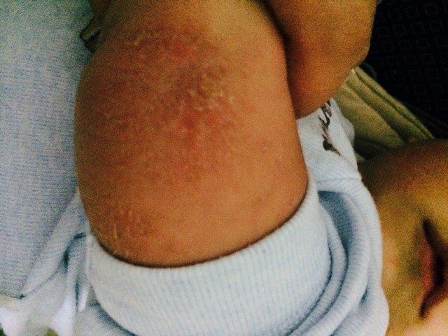 请大家帮我看一下宝宝手臂上是怎么了 可能很痒 宝宝晚上都睡不好觉 亲们 帮帮忙 有什么方法么?