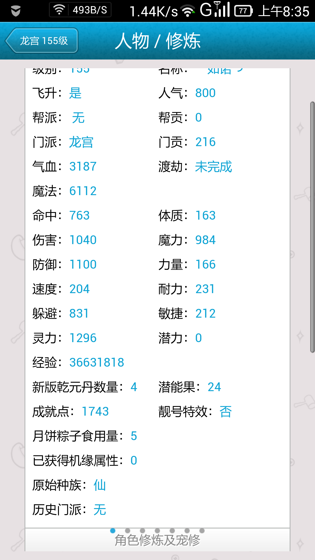 梦幻西游帮我看看这个龙宫号摆1200毛爷爷值不值,宝宝两个成品一个鬼将力劈160级,一个法宝155 梦幻西游帮我看看这个龙宫号摆1200毛爷爷值不值,宝宝两个成品一个鬼将力劈160级,一个法宝155级,有两身装备,一身生命套,一身人造板装,无特技,折算彩果70个,有锦衣2个 点击展开 匿名用户 2015-06-05 08:48 满意回答 这个不值1200 匿名用户 2015-06-05 08:53 宝宝知道提示您:回答为网友贡献,仅供参考。 为您推荐: 其他回答 空号700..鬼将另算 匿名用户 2015-06-05 22:28 不值,八百到一千 微说天下 2015-06-05 08:55 相关问题 梦幻西游 我有个宝宝鬼将你看1400万值不值 梦幻西游2谁能帮我看看这个宝宝值不值这价钱 梦幻西游155龙宫练血盾宝宝应该用什么样的宠?有什么技能,怎么加点?