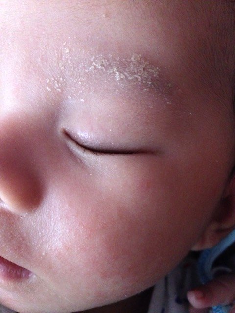 我家宝宝42天了这几天发现眉毛上有这白白的是怎么回事啊!怎么办呢?