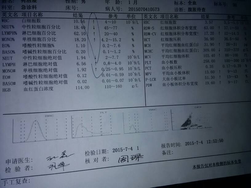 宝宝一个多月,总是哭闹,去医院检查,查血常规,b超都正常,最后诊断为积食,开了几付中药,现在大便基
