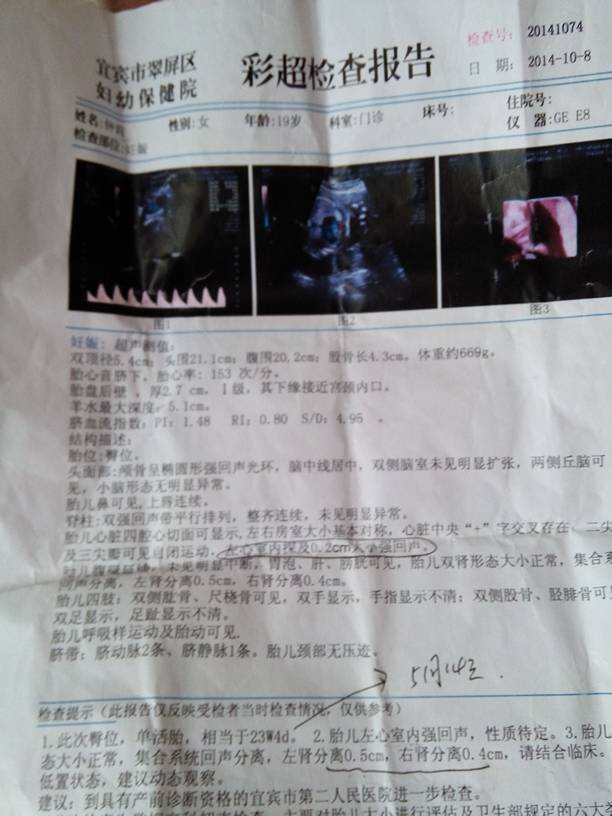 做四维彩超,左心室内探及0.2cm大小强回声,不知道问题大不大 点击展开 你是我的所有 2014-10-08 16:37 为您推荐: 其他回答 做四维彩超可以清楚的看见宝宝的情况,是否健康,在怀孕22~28周进行一次详细的胎儿畸形检测是最理想的,此期胎儿解剖结构已经形成并能为超声所显示,胎儿大小及羊水适中,受骨骼回声影响较小,图像清晰,大部分胎儿畸形在此时期均能表现出来。 lijie020826 2014-10-08 22:26 相关问题 四维彩超看到胎儿左心室可见灶性强回声大小约0 24x0 2cm 做四维彩超,左心室内探及0 2cm大小强回声,不知道问题大不大 怀孕五个半月四维彩超显示左心室内探及强回声光点0 193cmx0 184cm