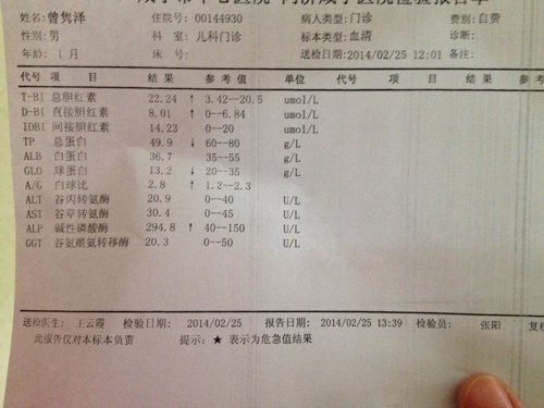 53天的宝宝黄疸仍未退全,黄疸常规三项是总胆红素TBILI52.25,直接胆红素DBILI12 48.间接胆红素39.8 ,30天到40天吃过十天茵栀黄,请问现在需要怎样治疗?是否肝炎?此外宝宝这几天有点打喷嚏,一天20多个,一天咳嗽两三声,检查结果能否看出感冒?此外检查结果显示血红蛋白只有87,医生说严重贫血,该怎么治疗?跪求解答! 点击展开 匿名用户 2014-02-25 22:34 为您推荐: 其他回答 蜂蜜很好,可是周岁内婴儿不建议吃,那就先给他喝些冰糖+红枣汤,红糖更好但过量会上火,白糖过量也会过利,糖补肝。主要还是听医生的吧。 匿名用户 2014-03-10 16:22 相关问题 47天宝宝黄疸没退总胆红素/142,直接胆红素13 0/ 宝宝四个半月多了,黄疸还有8·6和7·2,胆汁酸和总胆红素,直接胆红素、r-谷氨酰转肽酶都很高,是 新生儿总胆红素154 5直接胆红素7 0谷氨酰转移酶103碱性磷酸酶220这属于什么黄疸