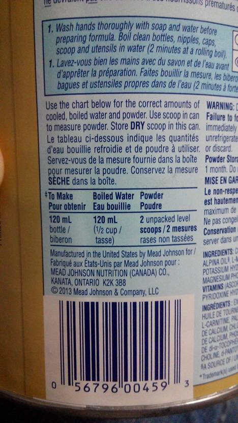 使用以下图标来进行正确冲调,使脚狼用煮过的水充奶粉。使用干勺子来取出奶粉。120ml的瓶子+120ml煮过的水+2勺奶粉(勺在加拿大是一个测量单位,一捆殖慕般1勺是30g,或者里之满边有勺子,就用他给的勺)