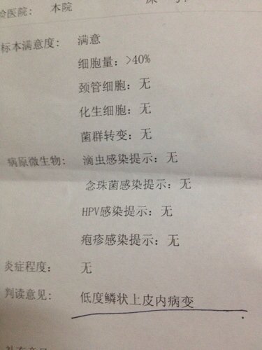 宫颈糜烂低度鳞状上皮内病变 点击展开 匿名用户 2014-04-26 21:53 为您推荐: 其他回答 病情分析: 您好,宫颈糜烂低度鳞状上皮内病变问题不大,可以做物理治疗比如利普刀、冷冻。 指导意见: 术后有可能出现分泌物增多或者水样排液是正常的术后反应,要注意保持外阴清洁,避免细菌上行感染,要求2个月不能性生活,半个月不能盆浴。 匿名用户 2014-04-27 06:01 相关问题 宫颈糜烂上皮内低度病变 不做活检可以吗 宫颈糜烂,发现时间是2个月前,发现时有血丝,检查白带无病变 宫颈糜烂病变轮廓清规则边缘锐利,白色程度较差,呈中等阴亮灰色,或间断呈白色 点状或细小镶嵌,血管
