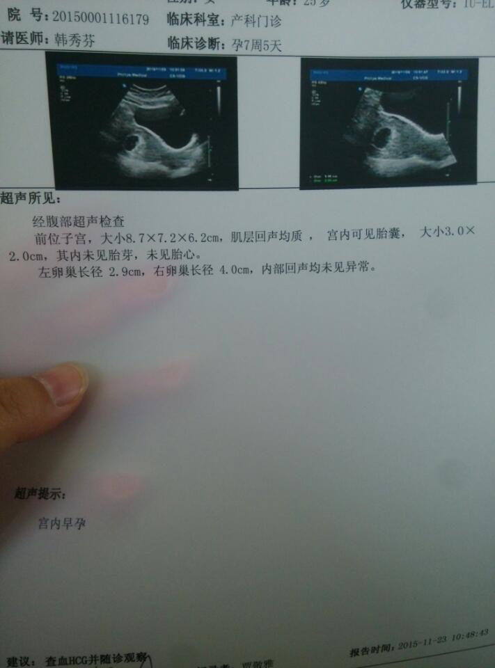 7+5未见胎心胎芽,朋友们谁会看?会是胎停育吗? 7+5未见胎心胎芽,朋友们谁会看?会是胎停育吗? 点击展开 150*****707_4zFc 2015-11-23 11:08 为您推荐: 其他回答 为你和你的宝宝祈祷 美囡囡 2015-11-23 11:48 真心祝宝宝健康,也有因人而异,可能你的宝宝发育的时间慢一点,医生有建议你做孕酮吗,它可以知道你带不带得牢你的宝宝。 美囡囡 2015-11-23 11:46 我7周就检查出来有0.65mm的胚芽和原始心血管,医生说有心跳 美囡囡 2015-11-23 11:41 在等等。。。 柳熊熊 2015-11-23 11:25 等几天看看, 我是你菊姐姐~ 2015-11-23 11:24 加载更多 相关问题 有胎芽胎心搏动还会胎停育吗 怀孕一个多月未见胎心胎芽,胎停育是怎么回事 怀孕B超结果显示未见胎芽和胎心,怀疑是胎停育,怎么办?