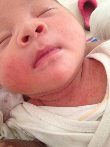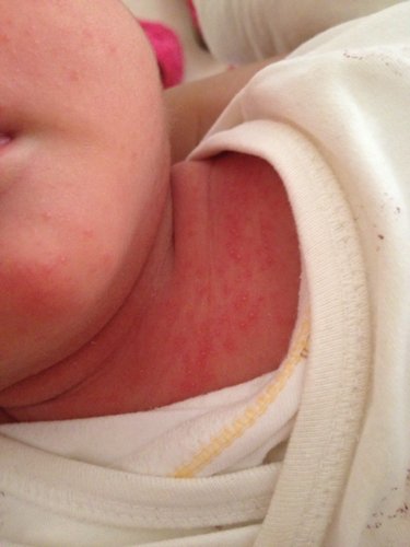病情分析: 目前你说的情况一般开始有红点的情况下是痱子,痱子严重后是可以引起局部有渗液的情况出现考虑是与湿疹感染是有关系的 指导意见: 是需要及时使用碘伏局部外擦后然后外擦炉甘石洗剂止痒治疗下的,注意保持腋窝或是脖子的下面干爽是有必要性的