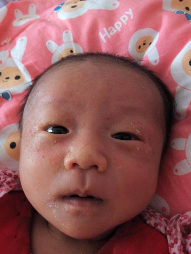 这种情况有可能是湿疹,最好是去皮肤科检查一下,确诊后再治疗, 母乳喂养的话,母亲饮食注意清淡为主,鱼虾,刺激性食物等少吃。