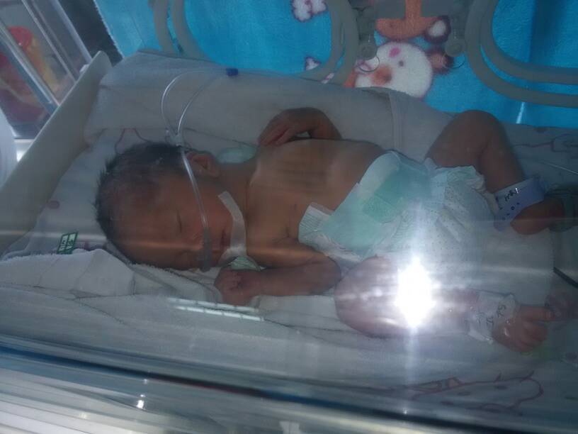 7月初得宝宝圈,又有一个宝贝提前跟大家见面了,33周得早产儿,才四斤二两,小的可怜,只能放在保温箱