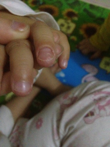 3岁小孩的手指指甲象变形一样,指尖脱皮,指甲周围肉肿肿的,之前去皮肤医院看了医生也没说什么,开了药