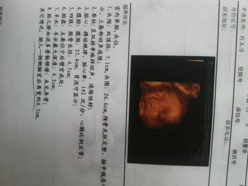 宝妈们我看看我做的四维有什么为题吗 宝妈们我看看我做的四维有什么为题吗 点击展开 颠沛流离只为你。 2014-11-05 16:22 为您推荐: 其他回答 根据你的情况,现在存在脑部积水的,但是在正常的范围内,暂时判断不出胎儿是否正常的,需要定期进行复查的。确定积液的变化。再做判断的, shenglongxiao 2014-11-06 09:57 做完医生都会说的啊 明哲嘛嘛 2014-11-05 17:53 正常的,, 159*****442_WHKY 2014-11-05 16:25 没问医生吗 咱继续、任性。_UOix 2014-11-05 16:24 相关问题 宝妈们都什么时候去做四维彩超呀 请问宝妈们做四维彩超什么时候做 宝妈们都是什么时候做的四维彩超啊?