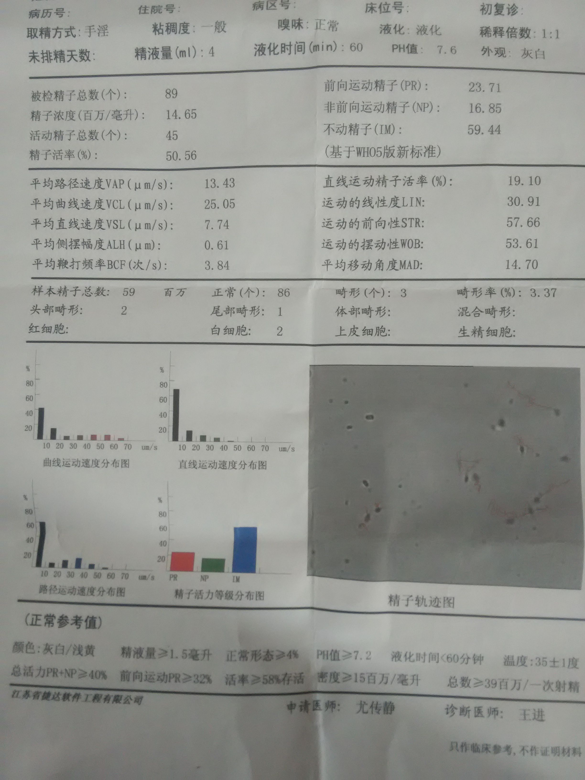 麻烦医生帮我看看,这份报告,精子怎么样,可以要孩子吗? 点击展开 匿名用户 2016-03-29 13:08 满意回答 说明精子成活率和畸形率有点高啊,建议现在不适合怀孕,尽毫录量调理你的身体,多运动,戒烟和酒。朗斯侨多吃殊今些健康的食物 阿醉蝶_5ozU 2016-03-29 13:15 宝宝知道提示您:回答为网友贡献,仅供参考。 相关问题 医生帮我看看这份精子报告,可不可以正常受孕,怎样治疗 请帮我看看我的精液报告单,A级精子只有2 75%,这样怀孕 帮我看看的精子检查报告 A 14 89%B 38 30% C 40 43% D 6 38% 这样的情形有没有希望怀孕啊 帮忙看看 谢谢了