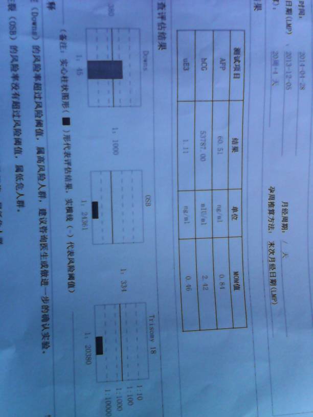 downs,就是唐氏的意思,你的风险高于阀值,为1:45,转个说明就是2.22%; 这个结论可以诊断为:唐氏筛查中期妊娠高风险。不知道你早期有没有做筛查? 建议24周进行彩超检查,如果有异常,一定要做产前诊断; 如果24周彩超检查没有异常,医生的建议还是做产前诊断,因为还是为风险在的。 产前诊断就是...