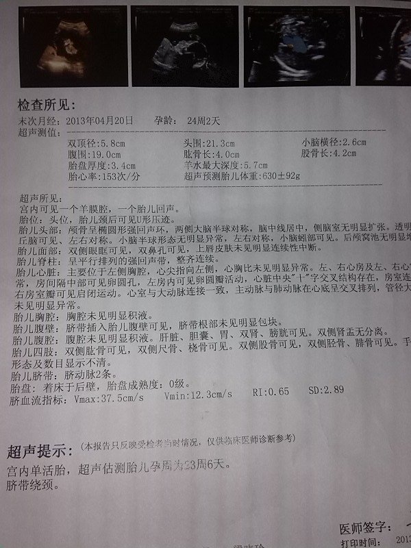 本人怀孕24周 在成都安琪儿做的4维和心脏彩超 能帮忙看下正常吗? 点击展开 匿名用户 2013-10-08 10:03 满意回答 符合妊娠月份,但脐绕颈要注意胎动,易造成胎儿宫内缺氧。 第春梅_wGN2 2013-10-08 10:15 宝宝知道提示您:回答为网友贡献,仅供参考。 为您推荐: 其他回答 脐带绕颈需要注意,随时去医院检查,减少活动量! 匿名用户 2013-10-08 11:52 相关问题 有谁知道成都安琪儿医院的四维彩超怎么样 请问,怀孕有24周,彩超查心脏结果是:3vt切面静动脉左侧可见一血管横断面,正常吗,谢谢 您是医生吧?我想问您点事,我怀孕24周做三维彩超说看心脏四腔结构清晰,可是肺动脉瓣膜没长