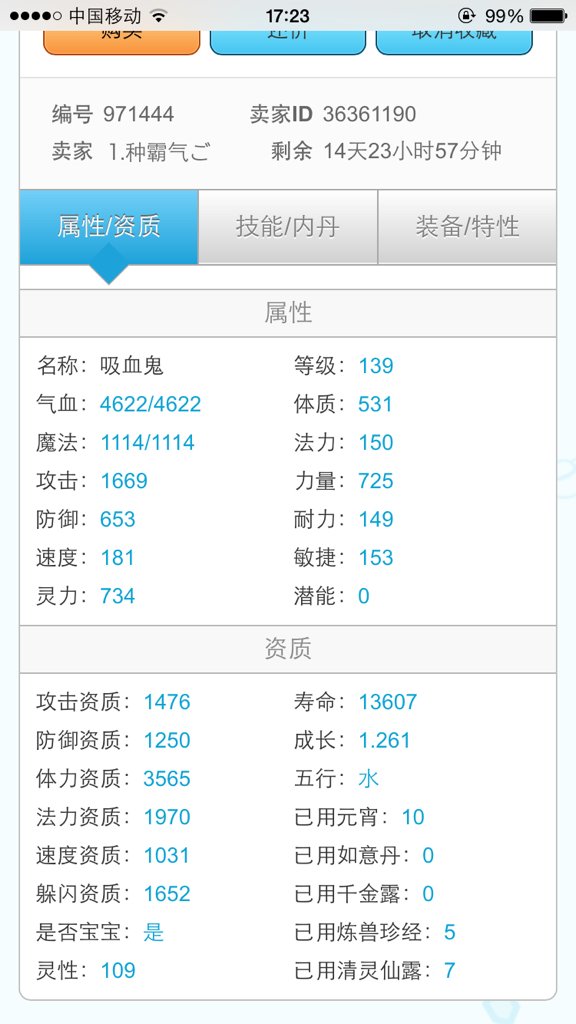 问:08年老区,一只139吸血鬼,8技能,没有宝宝装备(比例1:1500)多少人民币可以买? 点击展开 匿名用户 2015-11-17 19:07 为您推荐: 其他回答 4 5千 匿名用户 2015-11-19 18:10 1000-2800 匿名用户 2015-11-17 19:19 你玩的是什么 匿名用户 2015-11-17 19:14 相关问题 08年的老区,一只139吸血鬼,8技能,没有宝宝装备(比例1:1500)多少人民币可以买? 吸血鬼认证完9技能,假宝宝值多少钱 梦幻桃花源高连高必高吸的吸血鬼和高连高必隐身的吸血鬼各值多少?比例是10:80 魔王的应整什么好宝宝?